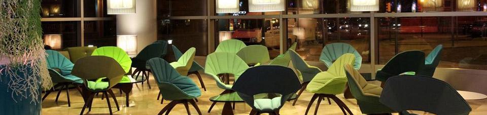Proyectado por Belén Moneo y el equipo de interioristas de Moneo Brook, su decoración genera una atmósfera atractiva y cosmopolita. Sus animados colores y la luz tornasolada de sus lámparas lo convierten en un espacio único de la ciudad.